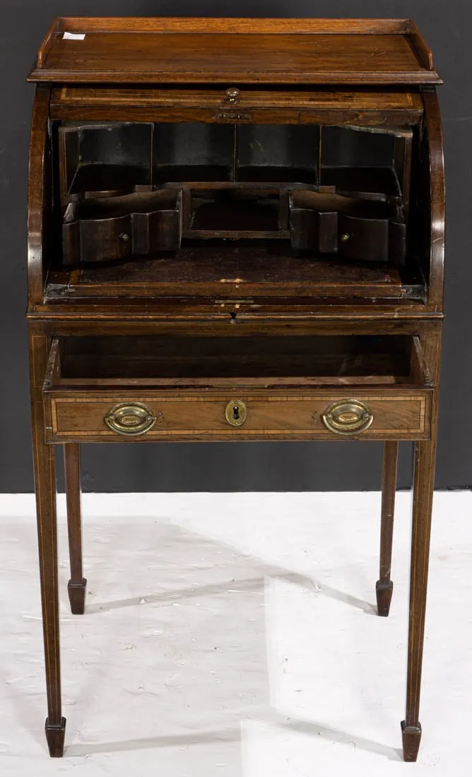 AF5-050: Antique Late 18th Century George III Mahogany Cylinder Roll Top Desk—